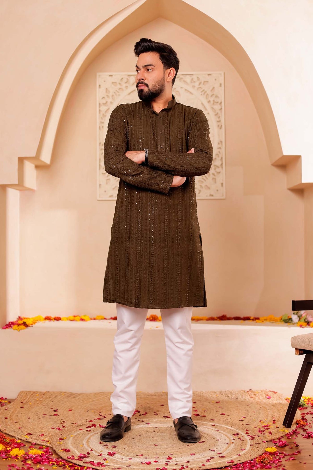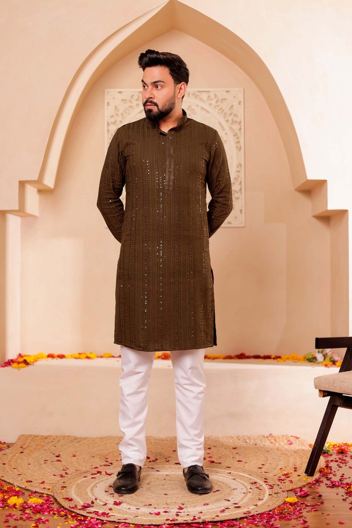 Introducing our Mehndi Green Lucknowi Chikankari Kurta Set, beautifully enhanced with delicate sequin work that adds a touch of shimmer to its timeless charm. Crafted from premium Lucknowi fabric, this set is perfect for special occasions. The intricate Chikankari embroidery, paired with sequin detailing, ensures you’ll dazzle with grace and elegance.”