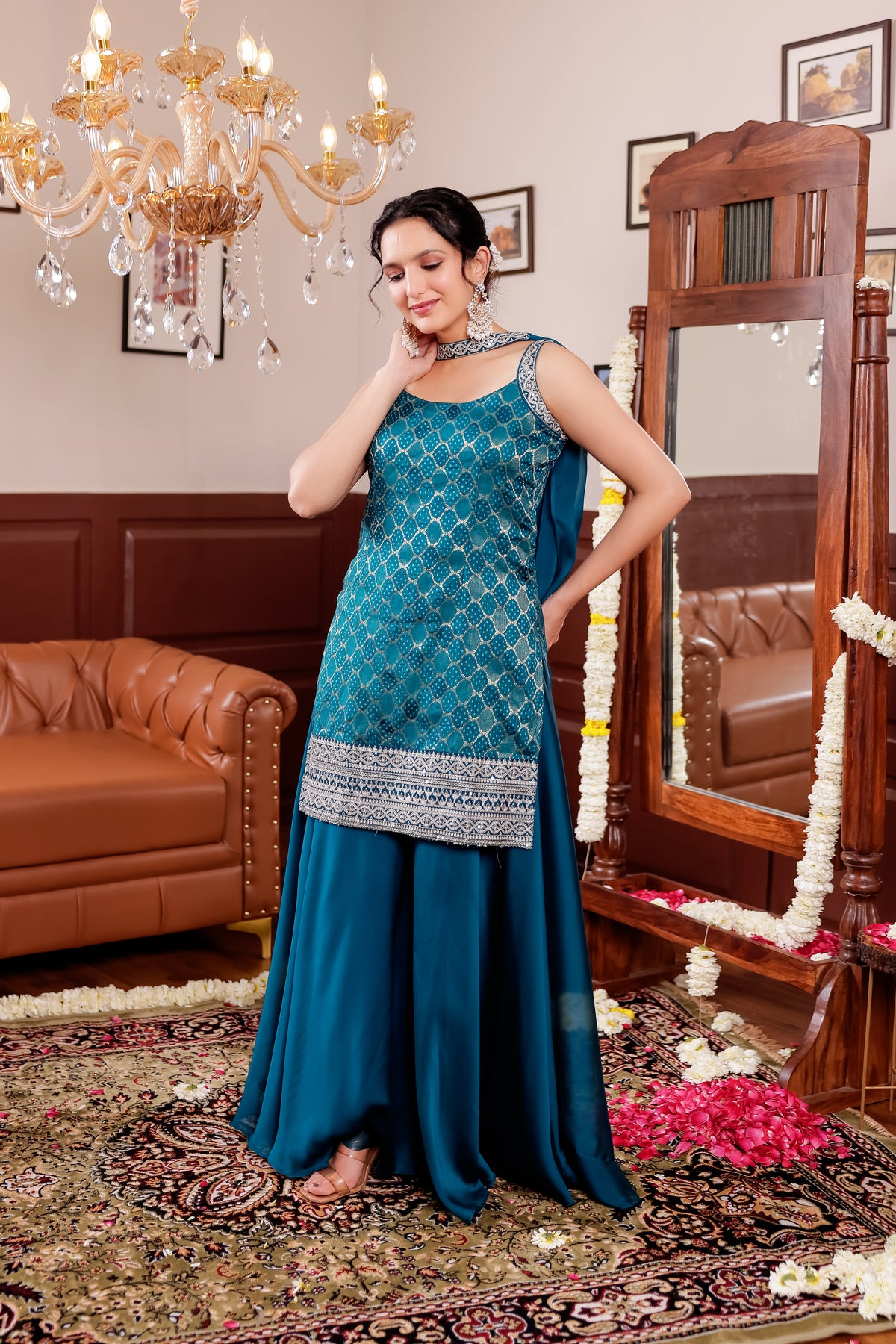 Experience the perfect blend of elegance and tradition with our strap style palazzo suit. This stunning suit comes with a matching palazzo and chiffon dupatta, ensuring both comfort and style. It's the perfect choice for special occasions or as a stylish option for bridesmaids!